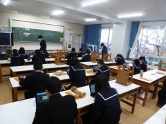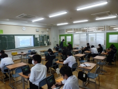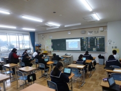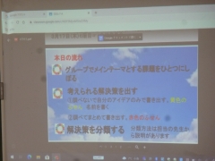 1年生では、総合的な学習の時間を使って、前回の授業に引き続き「SDGs(持続可能な開発目標)」に関する学習を行いました。