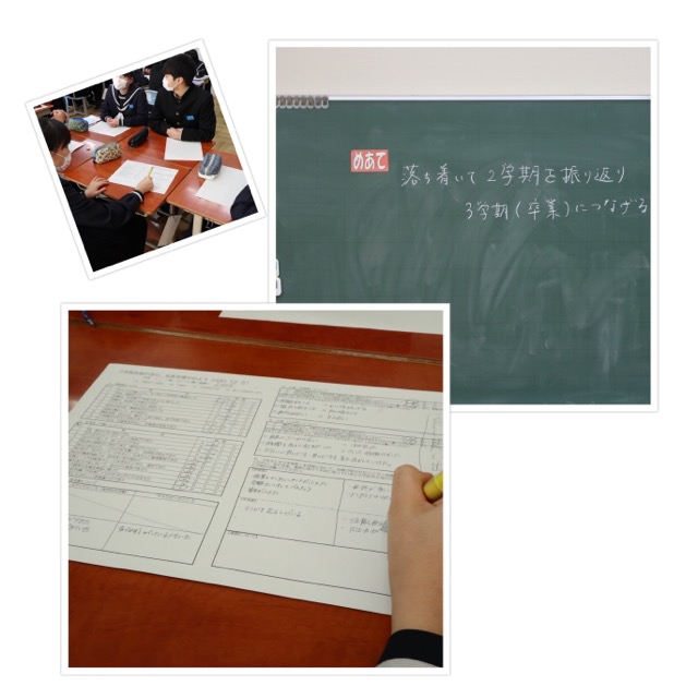 2学期の学習面や生活面についてふりかえりました。個人、班、クラスで共有し、3学期に活かせるよう話し合いました。卒業に向けて、納得できる状態で、過ごしてもらいたいと思います。