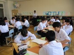 昨日、無事自然教室を終え、今日は自然教室の振り返りや個人新聞を作成しました。生徒たちは少々疲れた様子もみられましたが、それ以上に一つの大きなイベントをやり切った達成感や満足感を感じているようでした。振り返りでは、まず個人の反省、次に班での反省、そして各クラスの反省を行い、最後に学年全体で成果と反省を共有しました。学年集会後、生徒たちの中からお互いに課題解決しようとする動きがみられるようになってきています。これからの成長が楽しみです。