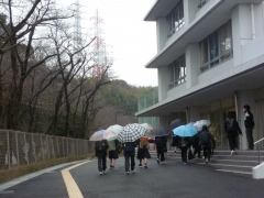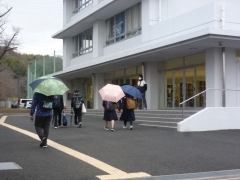 登校時間となり、小降りだった雨も徐々に強くなってきました。