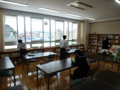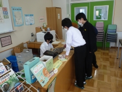 本日、昼休みの図書館の様子です。本日は1年生の最終返却日ということで、本の返却のため多くの生徒が訪れていました。