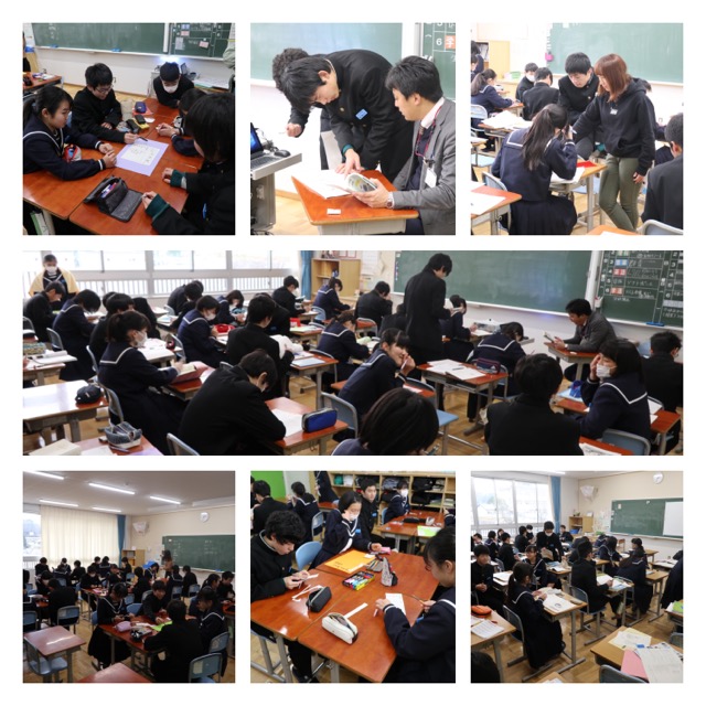 年が明けて、実力テストがあり、来週には卒業テスト、その後はそれぞれが私立高校の入試を控えています。そのため、朝から教室で学習する姿や、授業中も連休明けとは思えない程集中する姿が多く見られています。いよいよ受験が近づいていることを感じられる時期になってきました。周りでは、インフルエンザも流行しているようなので、しっかり予防して、この雰囲気のまま頑張ってほしいと思います。