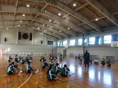 健康観察や消毒、体育館や武道場は換気を徹底し、屋外での活動を含めてマスクを着用していても熱中症等の危険のない内容で授業を進めています。