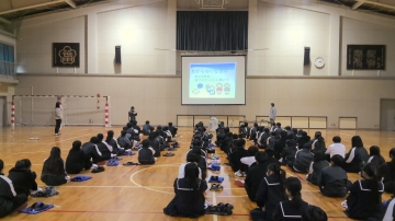 にじ学園の竹内先生に学校の様子や交流会で注意をしていくことをお話ししていただきました。