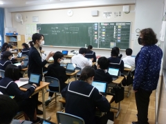 この時間は、ティームティーチングの2人の先生に加えて、ALTのアイザック先生にもサポートしていただきました。笹川中でのアイザック先生の授業は、本日が最終日となります。アイザック先生、1年間ありがとうございました。