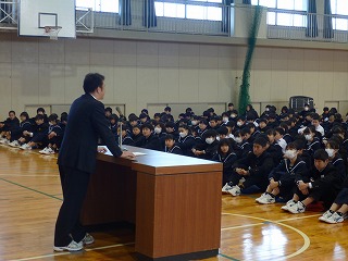 3学期がスタートしました。始業式では校長先生から「笹川魂をもって、みんなで日本一の笹川中学校にしていきましょう。」というお話がありました。