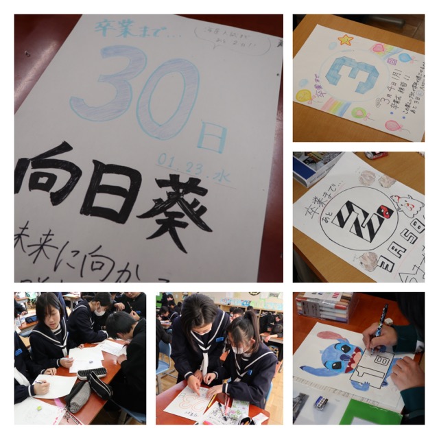 卒業まで学校に通う日数が40日程となりました。そこで、1人ひとりが1ページずつを担当して、クラスに1つの日めくりカレンダーをつくることにしました。充実した日々を送れるよう、心踊るメッセージを添えて、ステキなカレンダーが出来上がりつつあります。完成が楽しみです!