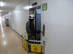 点検や備えは、災害時に対するものだけではありません。日常で使用しているものについいても必要です。15日(火)に行われた「エレベーターの定期点検」の様子です。