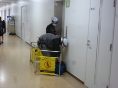 先日、14日(月)各階にある非常ベルの動作確認や緊急電話の通話状況等、消火設備を点検していただきました。