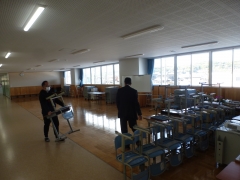 3年生の先生方を中心に、次年度に向けて、3年生が使用していた教室の整備を行っています。