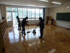 全ての教室の整備、掃除、傷んだ机の天板入替、ワックスがけなどを行いました。