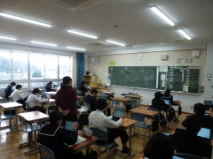 学級の枠をなくし、17あるゴールの中からそれぞれが選んだゴール別に、4人程度の小グループをつくりました。この時間は、小グループごとに7つの教室に分かれ、自分たちが選んだゴールについての調べ学習を行いました。