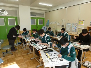 明日の始業式に先立って、本日基礎クラブでは、書初めが行われました。