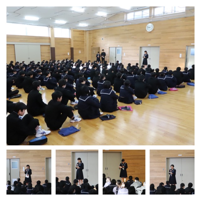 本日、学年集会がありました。各クラスの様子や取り組みの成果、課題がリーダーから伝えられました。その後は、反省はふりかえるだけで終わらず、次に繋げるためにしているという言葉を受け、リーダー会から「笹川魂」についての話がありました。卒業を控えて、在校生にどれだけのことを残せるのか、自分たちがどう過ごすのか熱く語ってくれました。リーダーの成長も感じられる集会となりました。