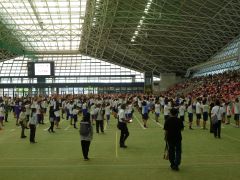 本日午前中(ほんじつごぜんちゅう)、四日市ドームで三泗小・中学校特別支援学級連合運動会(さんししょう・ちゅうがっこうとくべつしえんがっきゅうれんごううんどうかい)が行(おこな)われ、本校(ほんこう)からも生徒(せいと)が参加(さんか)しました。