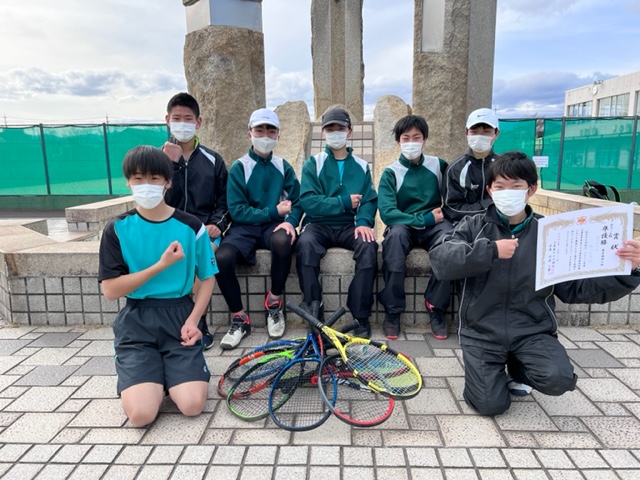 令和3年度三重県中学生テニス春季学校対抗戦大会(Bチーム戦)が、3月20日(日)に三滝テニスコートにて開催されました。先日のAチームの活躍(ベスト4)に引き続き、男子テニス部Bチームが、見事、準優勝しました。