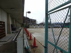 生徒アンケートに「テニスコートのフェンスを直してほしい」という記述があり、調査を行った結果、フェンスの支柱の数本に腐食が確認され、危険個所と判断をし改修工事となりました。