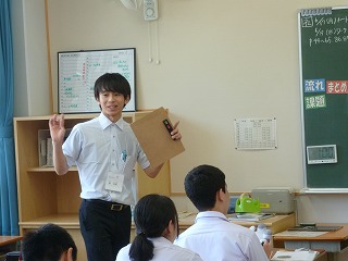 今週は2年生が職業体験学習中のため、1,3年生を担当している教育実習生がまとめの授業を行っています。1年生の国語、3年生の社会でそれぞれ授業が行われ、多くの先生方の参観もありました。教育実習はいよいよ明日が最終日になりますが、残されたわずかな時間を大切にし、最善を尽くしてほしいと思います。