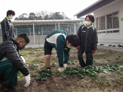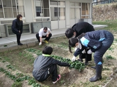 7,8組では生活の時間に畑の草取りを行いました。すると、土筆(つくし)採りに見えた近くにお住いの方から「そのほうれん草、収穫しても大丈夫ですよ!」とお声をかけていただきました。