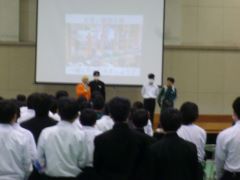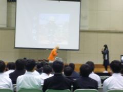 5限目(げんめ)、オレンジ田中さん(吉本興業(よしもとこうぎょう))を講師(こうし)に招(まね)き、人権講演会(じんけんこうえんかい)を行(おこな)いました。
