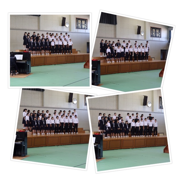 本日、体育祭で合唱コンクールのリハーサルをおこないました。初めて、他のクラスの合唱を聴き、他のクラスの前で合唱を披露しました。どのクラスにも、良さや課題があると思うので、残りの期間を有効に活用して、ステキな合唱をしてほしいと思います。