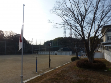 校庭には半旗が掲げられ、朝の学活で防災についてのお話しがありました。