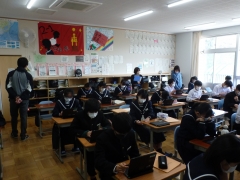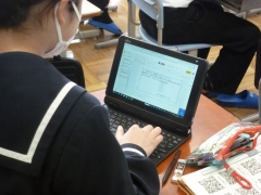 前回までは、広島に関わる限定的な調べ学習でしたが、今回からは日本各地に関わる戦争について調べ学習を行いました。また、前回の個人作業とは違い、クラウドを活用して班単位での共同編集となったため、ICT支援員の鱸(すすき)さんにサポートをしていただきました。