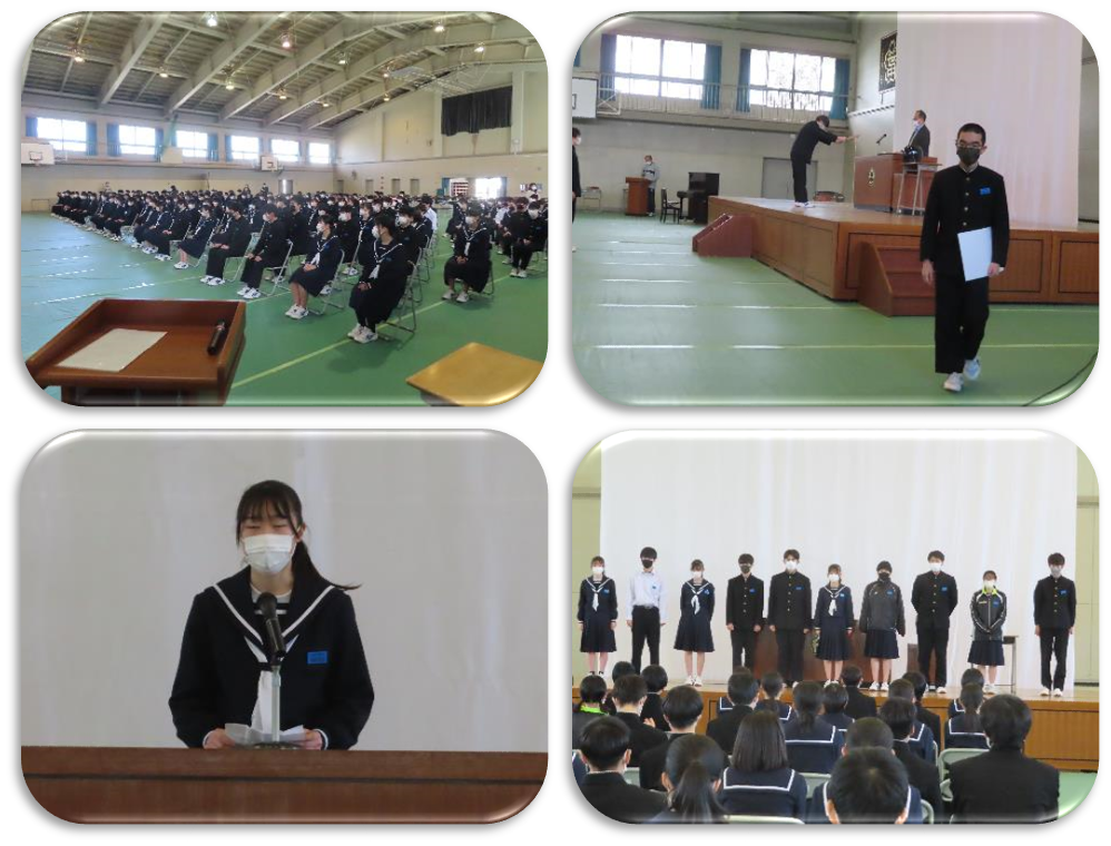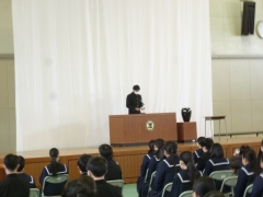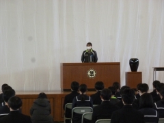 その後の学年集会では、リーダー会のそれぞれが3年間の中学校生活や卒業式に向けての思いを話しました。