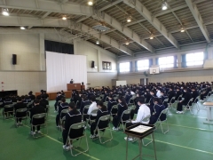 3年生では、卒業式の全体練習の合間に、最後の学年集会を行いました。