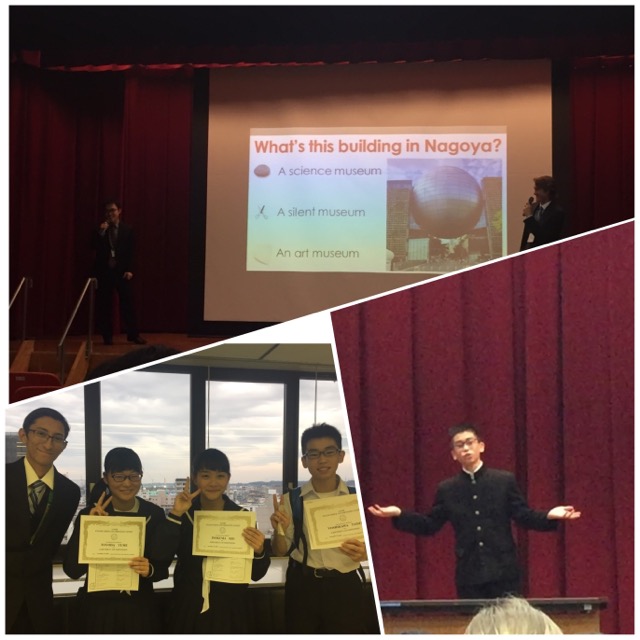 四日市総合会館にて、スピーチ英作文コンテストが行われました。3年3組 吉川泰成さんがスピーチの部門で、3年2組 豊田ゆめさん、3年4組 猪熊梨央さんが英作文の部門で出場しました。