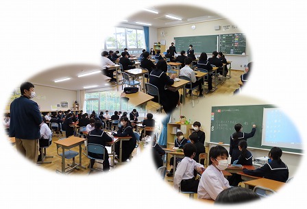 3年生の総合的な学習の時間では、修学旅行に向けての取り組みを行っています。リーダー会が中心となり、目標やスローガンの設定、ルールの確認などを行いました。
