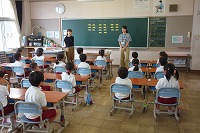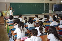 今日から給食も始まり、時間割に そった授業も始まりました。 運動会の練習、教科の授業、学級会 など、することは学級によって異なりますが、 少しずつもとのリズムを取り戻していきます。 *1-1 2学期から新しくお世話になる先生の 紹介をしてもらっています。この後、 書写の学習をします。  *1-2 音楽の授業です。自分の声を感じながら 発声練習をしています。  *2-1 詩の視写をしています。  *3-1 手紙の書き方を学習します。  *4-1 学級会で係をきめています。  *5・6年生 体育館で組立体操の練習をしています。   |  |