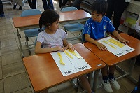 子どもたちが夢中になり、学力が つくような授業作りのために、学校 ではいろいろな形で研修を行って います。研究授業を行い、参観後に 授業について討議するのもその一つ です。 今回は、特に東京学芸大学の齋藤 ひろみ教授や県教育委員会・市教育 委員会の方に2年生の授業を参加して いただき、助言も いただきました。   *子どもが考えた計算の仕方を隣の 子に説明します。  *齋藤ひろみ教授の助言  *グループ討議の内容を交流し合います。  |  |