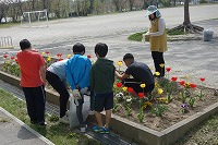 *花壇の花も満開です。