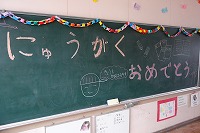 職員といっしょに教室や入学式の