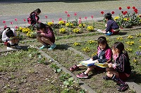 花壇などにある花を観察したり、温度計で