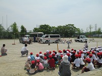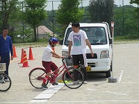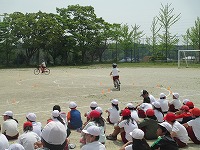 |  今年の交通安全教室は、四日市南自動車学校の みなさんにお世話になりました。 【1・2・3年生】 歩行者用の信号機の見方と横断歩道の渡り方を 教えていただきました。  *右・左・右を見て、手をあげて渡るんだよ。  *青信号でも、点滅をしたら止まらなければ なりません。実際に信号を見て順番に渡って みました。 【4・5・6年生】 自転車の乗り方を教えてもらいました。 代表の子たちがヘルメットをかぶって、コースを 走ってみました。  * 「止まれ」の標識があったら、自動車だけでは なく、自転車も止まらないといけません。  * S字カーブや、コーンの間をくねくねと走って みました。  * 夜暗くなってから歩いたり自転車に乗ったり するときには、反射材を使おうね。 【全校で】   * 歩いていても、自転車に乗っていても、 飛び出したら車は急に止まれません。 人形を使っての飛び出し実験をしてもらい ました。 すごい音がしたり、10mも人形が飛ばされ たりにびっくり!! 今日教えてもらったことを守って、みんなが事故 なく、安全に過ごしたいと心から思いました。 |  |