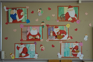 *12月らしい楽しい掲示をしていただいています。