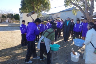 *西笹中生徒の力を借りての餅つき