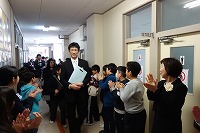 *歓送 雨が降っているので校舎内で