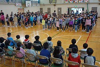 任命式の後、1年生と2~6年生の対面を