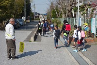 下校しました。新しい班長がリードしていきます。