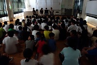 カーテンをしめて、視聴覚室を真っ暗にし、