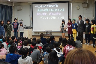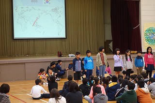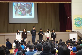11月18日の土曜授業日に、ささがわワールド フェスティバルを開催しました。 今まで生活科や総合的な学習の時間に、笹川地区や 日本・世界のことを調べてきました。調べたことを 劇やクイズなども取り入れて発表を行いました。 *実行委員からのメッセージ  *1年生「ともだちのわをひろげよう」  *2年生「公園たんけんへGo!!」  *3年生「意外とびっくり!!笹川お店たんけん」  *4年生「私たちの防災」  *5年生「当たり前って何だ?」  *6年生「ぼく・わたしの生きる道」  |  |
