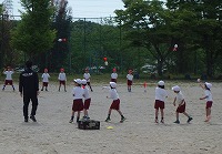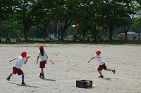 青空の下、運動場で元気一杯