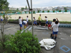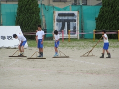 雨があがってから、すべての学年が運動場で最後のリハーサルをすることができました。