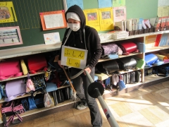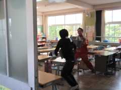 4年1組に突然不審者が侵入したという想定で訓練を行いました。