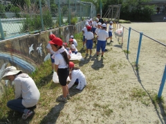4~6年生は校外に出て、西公園や学校周辺のゴミ拾いを行いました。