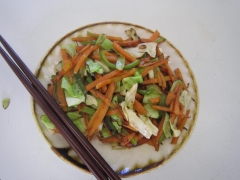6年生になってから初めての調理実習は「三色野菜いため」でした。