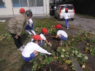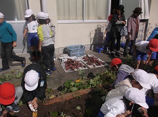 春に笹五会の皆さんと植えた芋を一緒に収穫しました。